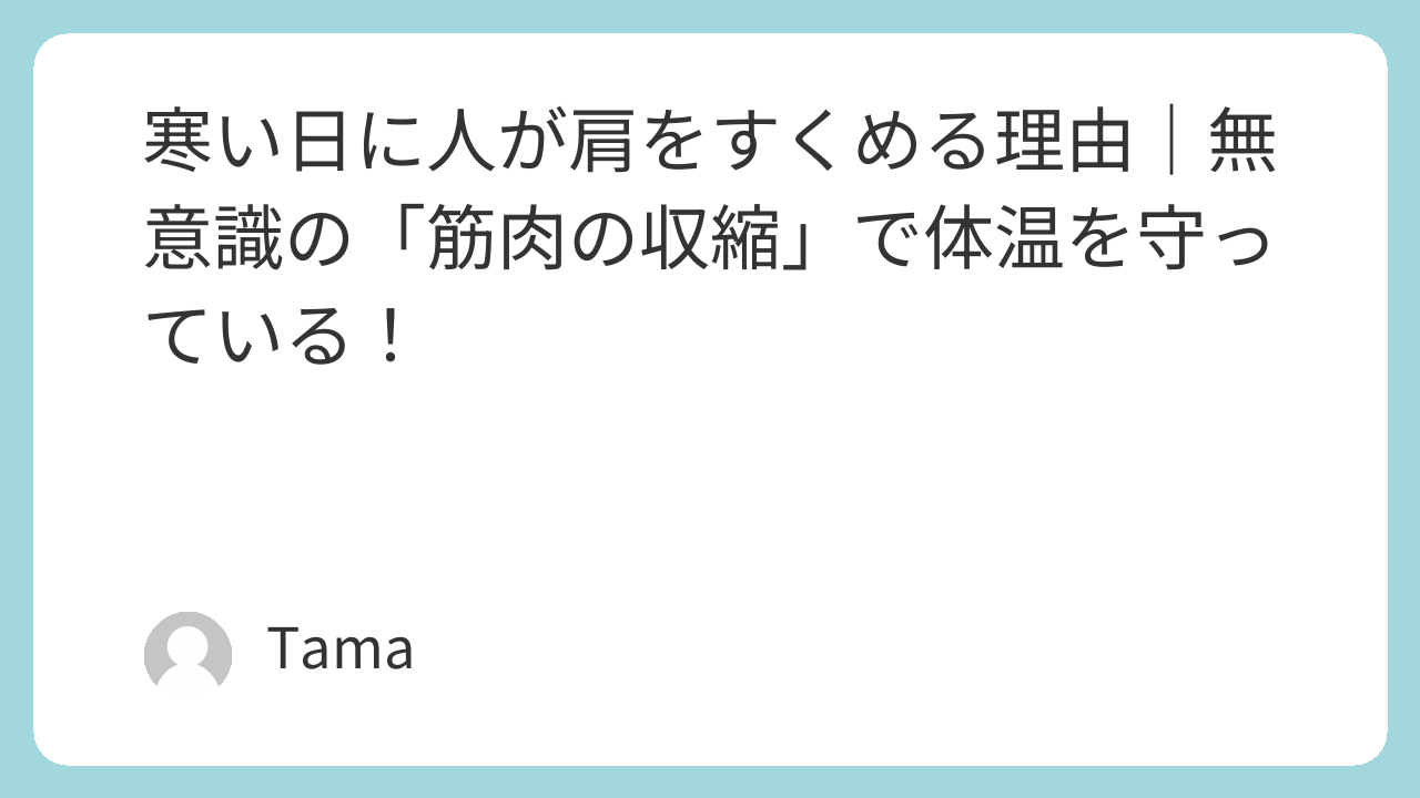 この記事では、「筋肉の収縮」と「体温保持」という2つのポイントから、寒いときに肩をすくめてしまう理由をわかりやすく解説していきます。