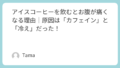 冷たいカフェオレやアイスコーヒーを一気に飲むと、内臓が急に冷えて血流が悪くなる。