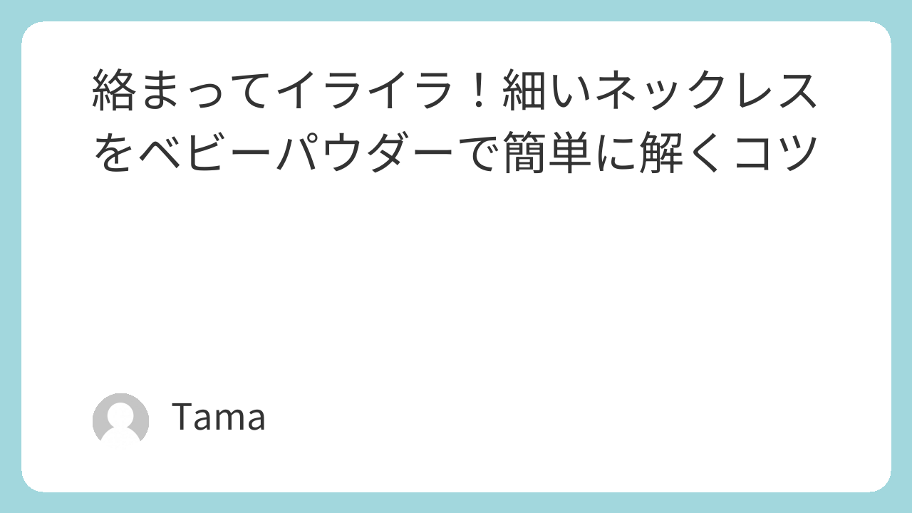 ポイントは「力を入れすぎないこと」。 無理に引っ張ると、細いチェーンが切れちゃうこともあるから注意してね。 ベビーパウダーのサラサラ効果で、指先で軽く動かすだけでも驚くほどスムーズに解けるはず!