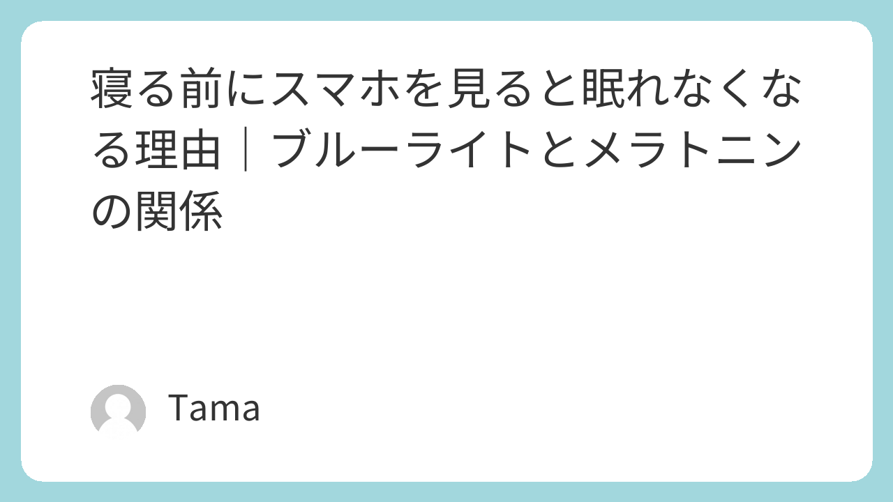 寝る前にスマホを見ると眠れなくなる理由、それはズバリ「ブルーライトがメラトニンを抑えるから」。 脳が昼だと錯覚してしまい、眠りの準備が止まってしまうんだ。