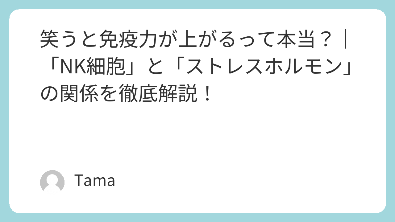 つまり、笑うことは「ストレスホルモンを減らしてNK細胞を元気にする」という、まさに免疫強化の黄金ループなんだよ。