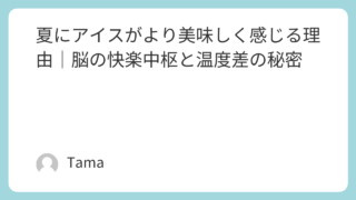 食べ物 夏にアイスがより美味しく感じる理由|脳の快楽中枢と温度差の秘密 夏になると、なぜあんなにもアイスが美味しく感じるんでしょうね?冬に食べるアイスももちろん美味しいけど、真夏の暑い日に食べるアイスのあの幸福感は、まるで別格。冷たい甘さが喉をすべり落ちていく瞬間、体中がスッと涼しくなるあの感じ――あれには、ち... 2025.10.19 食べ物